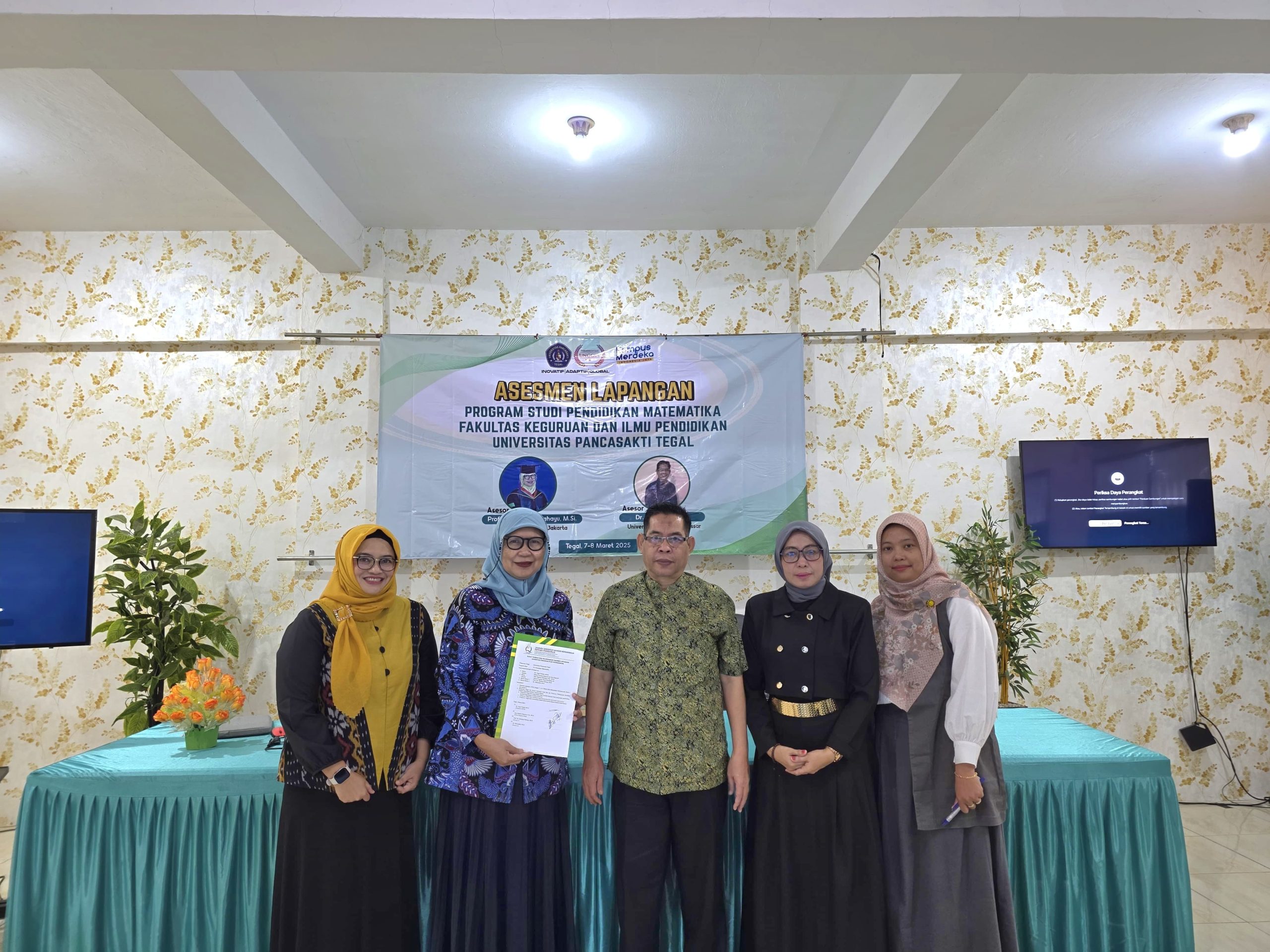 Asesmen Lapangan Program Studi Pendidikan Matematika Fakultas Keguruan dan Ilmu Pendidikan Universitas Pancasakti Tegal dilaksanakan 7-8 Maret 2025 bertempat di ruang D100 UPS Tegal. Hadir dalam kesempatan ini perwakilan Lembaga Akreditasi Mandiri Kependidikan Prof. Dr. Wardani Rahayu, M.Si. (Universitas Negeri Jakarta) dan Dr. Alimuddin, M.Si. (Universitas Negeri Makasar) sebagai asesor dalam pelaksanaannya.
