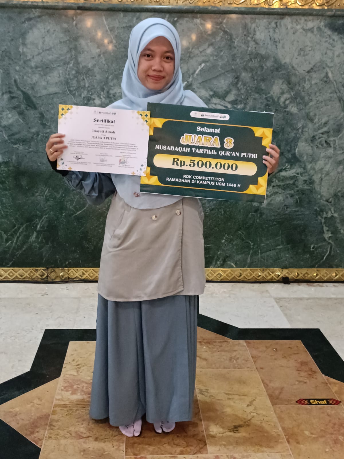 Inayati Ainah mahasiswi Prodi Pendidikan Bahasa Inggris FKIP Universitas Pancasakti Tegal berhasil menorehkan prestasi setelah meraih Juara 3 putri MTrQ tingkat nasional antar mahasiswa dan pelajar SMA/MA/sederajat. Lomba tersebut diadakan oleh Universitas Gadjah Mada dalam rangka kegiatan RDK (Ramadhan di Kampus) 1446 H yang bertemakan “Generasi Berkarya : Menguatkan Identitas Islam melalui Seni al Qur’an sebagai Harmoni Iman Berkelanjutan”.