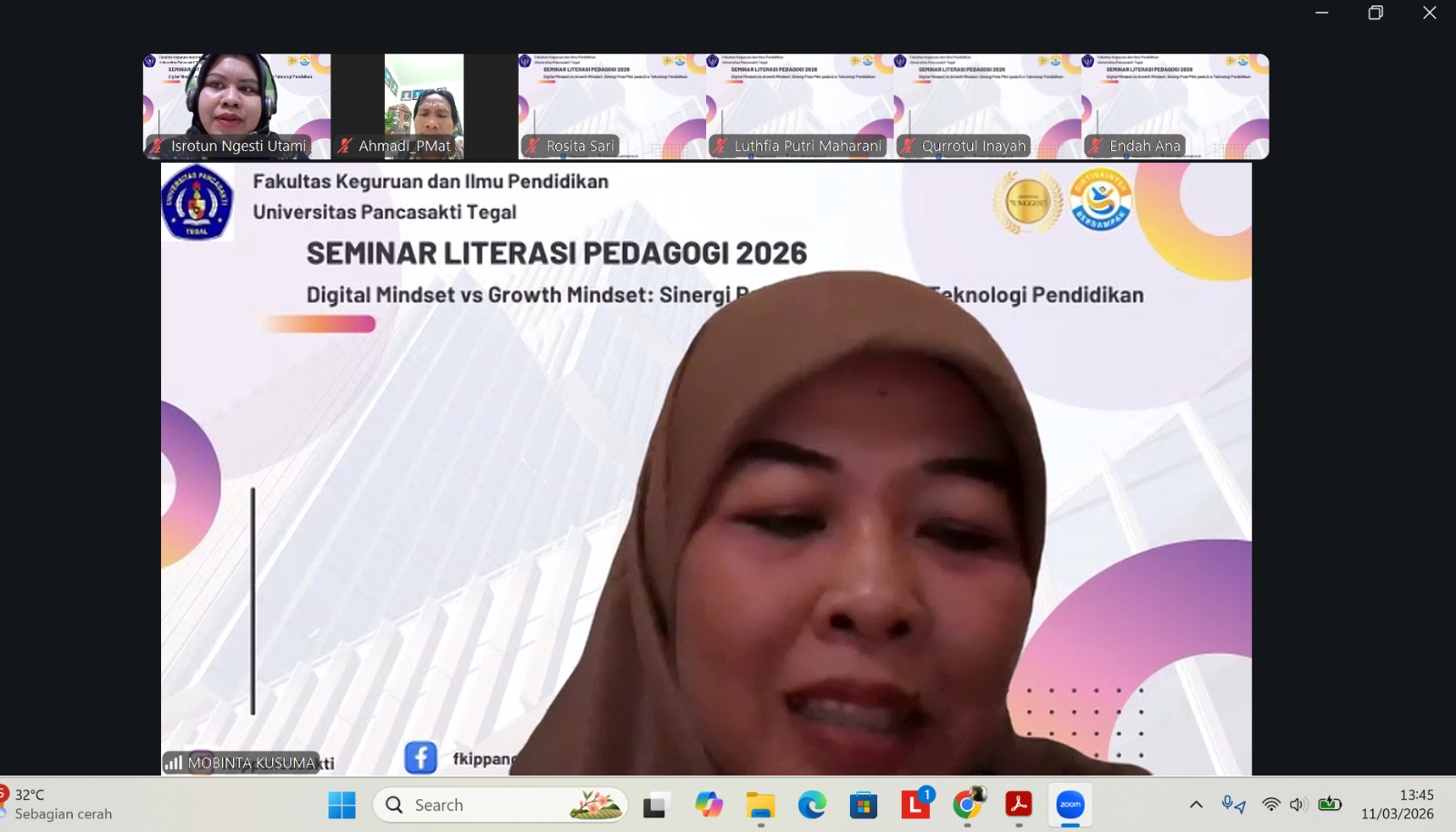 Fakultas Keguruan dan Ilmu Pendidikan (FKIP) Universitas Pancasakti (UPS) Tegal kembali menunjukkan komitmennya dalam memperkuat kualitas pendidikan melalui penyelenggaraan Seminar Literasi Pedagogi (SRADA) 2026. Kegiatan ini dilaksanakan secara daring melalui platform Zoom pada Rabu, 11 Maret 2026, mulai pukul 13.00 WIB hingga selesai.