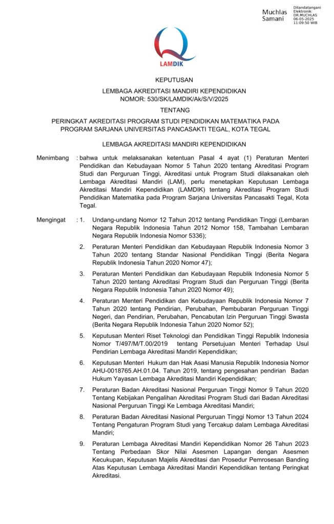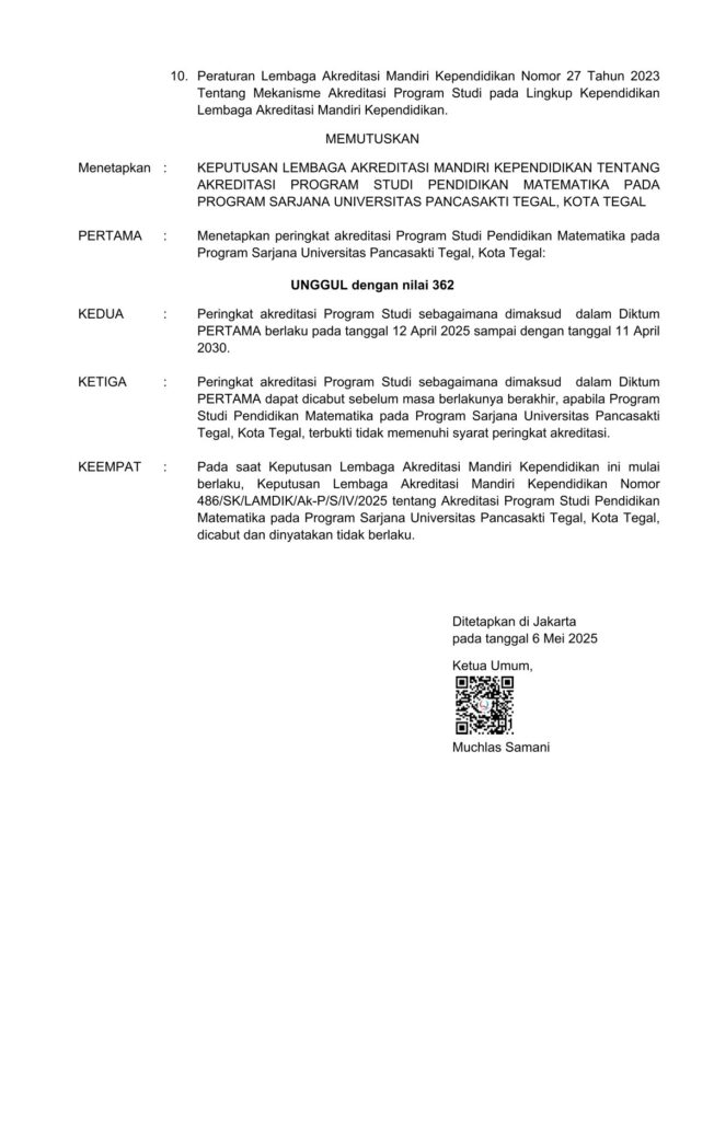 - Menguatnya eksistensi program studi sebagai pusat kajian pendidikan matematika di tingkat regional.