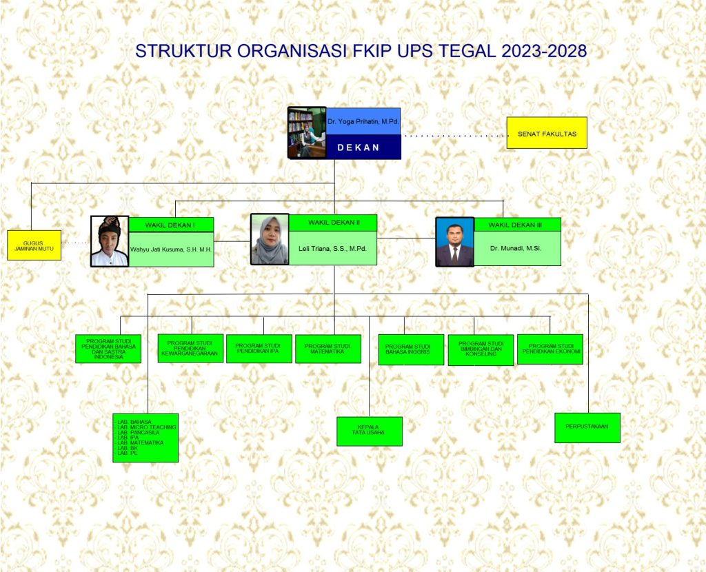 Sistem tata pamong yang ada di FKIP dijalankan di bawah pembinaan Dekan FKIP UPS Tegal, Wakil Dekan I (Bidang Akademik), Wakil Dekan II (Bidang Administrasi dan Keuangan), dan Wakil Dekan III (Bidang Kemahasiswaan).
