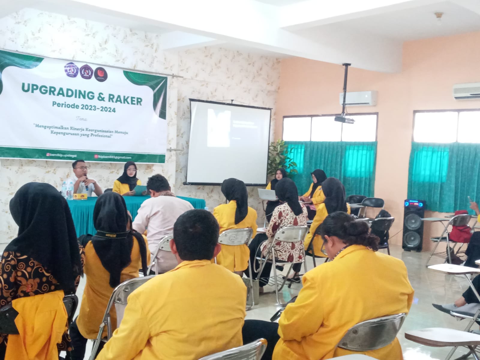 Badan Eksekutif Mahasiswa Fakultas Keguruan dan Ilmu Pendidikan Universitas Pancasakti Tegal Kabinet Wirasena Sagraha telah resmi melangsungkan kegiatan Upgrading dan Raker pada hari Sabtu, 28 Oktober 2023 dengan tema ” Mengoptimalkan Kinerja Keorganisasian Menuju Kepengurusan yang Profesional. Acara Upgrading dan Raker Merupakan serangkaian program kerja yang merupakan kegiatan perkenalan kepada seluruh kepengurusan baru yang bersifat internal organisasi untuk mempererat hubungan para anggota BEM dan memberikan pemahaman mengenai kinerja internal BEM Fakultas. Tujuan dari upgrading dan Raker adalah Memperkuat Solidaritas, Meningkatkan motivasi, kepercayaan diri, saling percaya dan rasa kebersamaan antar pengurus BEM FKIP, serta Membentuk karakter-karakter yang dibutuhkan dalam berjalannya suatu organisasi. Dengan sasaran Seluruh pengurus Badan Eksekutif Mahasiswa Universitas Pancasakti Tegal Melalui kegiatan ini, diharapkan seluruh pengurus periode 2023/2024 mampu membangun semangat dan mengaplikasikan kinerja organisasi yang kreatif agar tercipta generasi yang hebat. Acara diikuti 28 perwakilan mahasiswa.